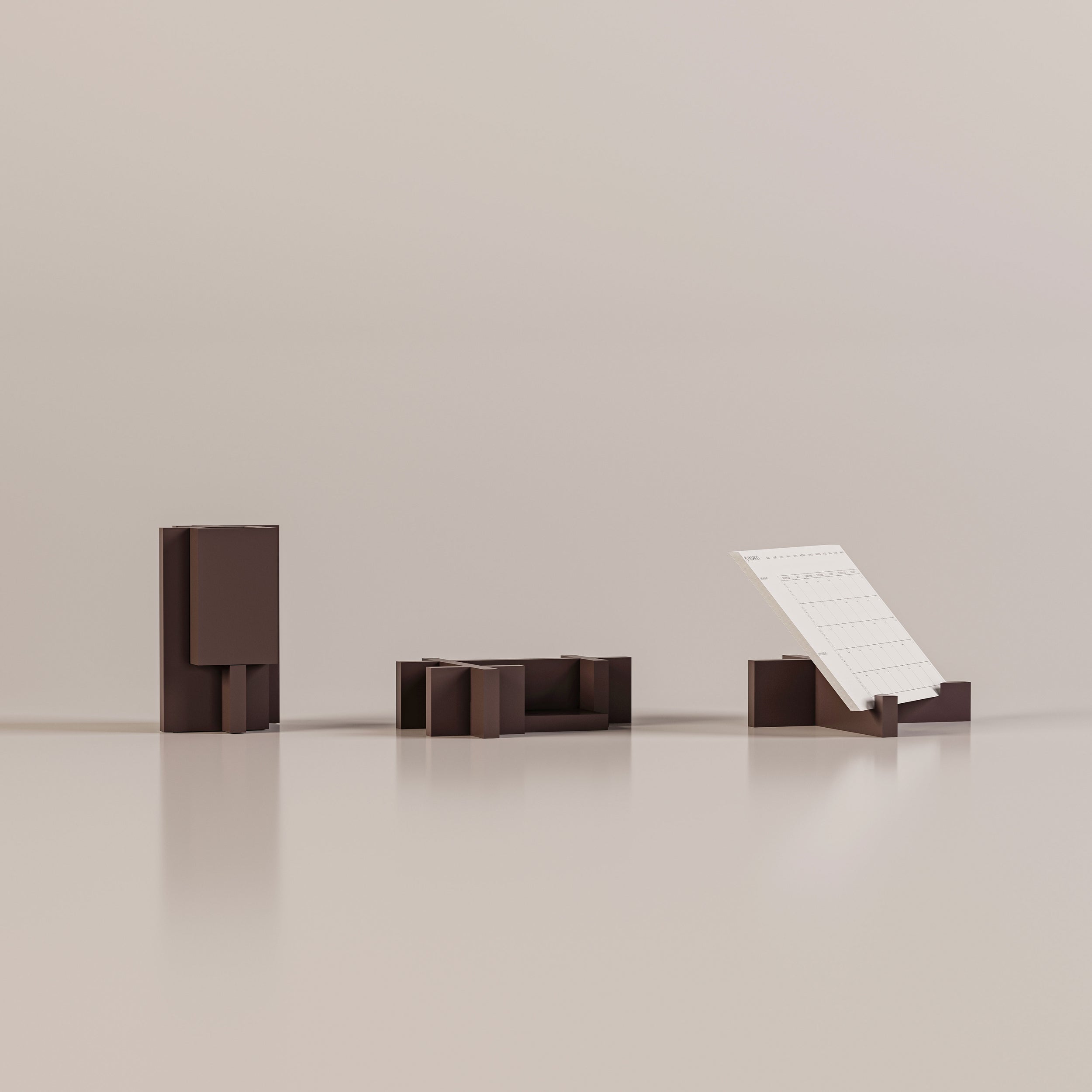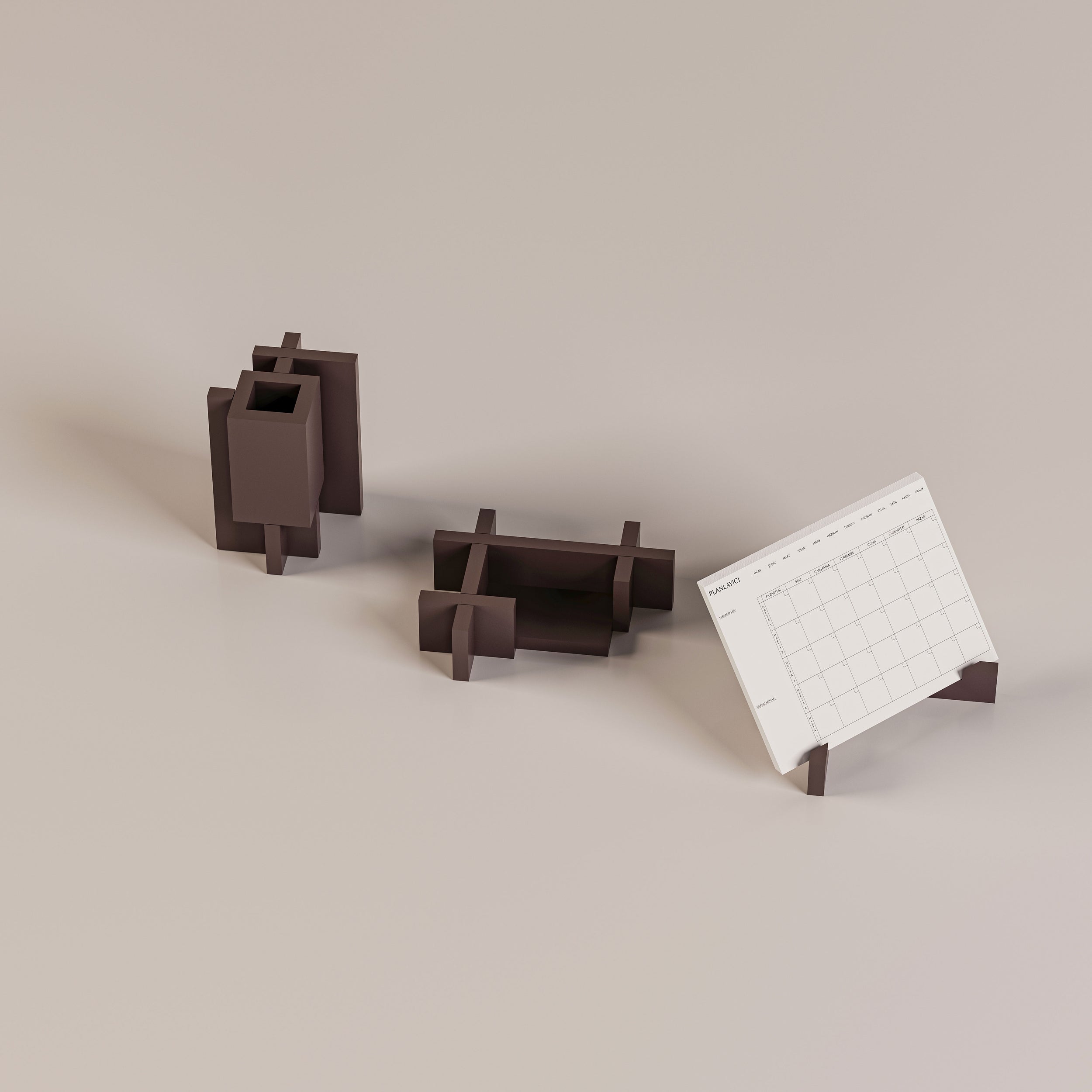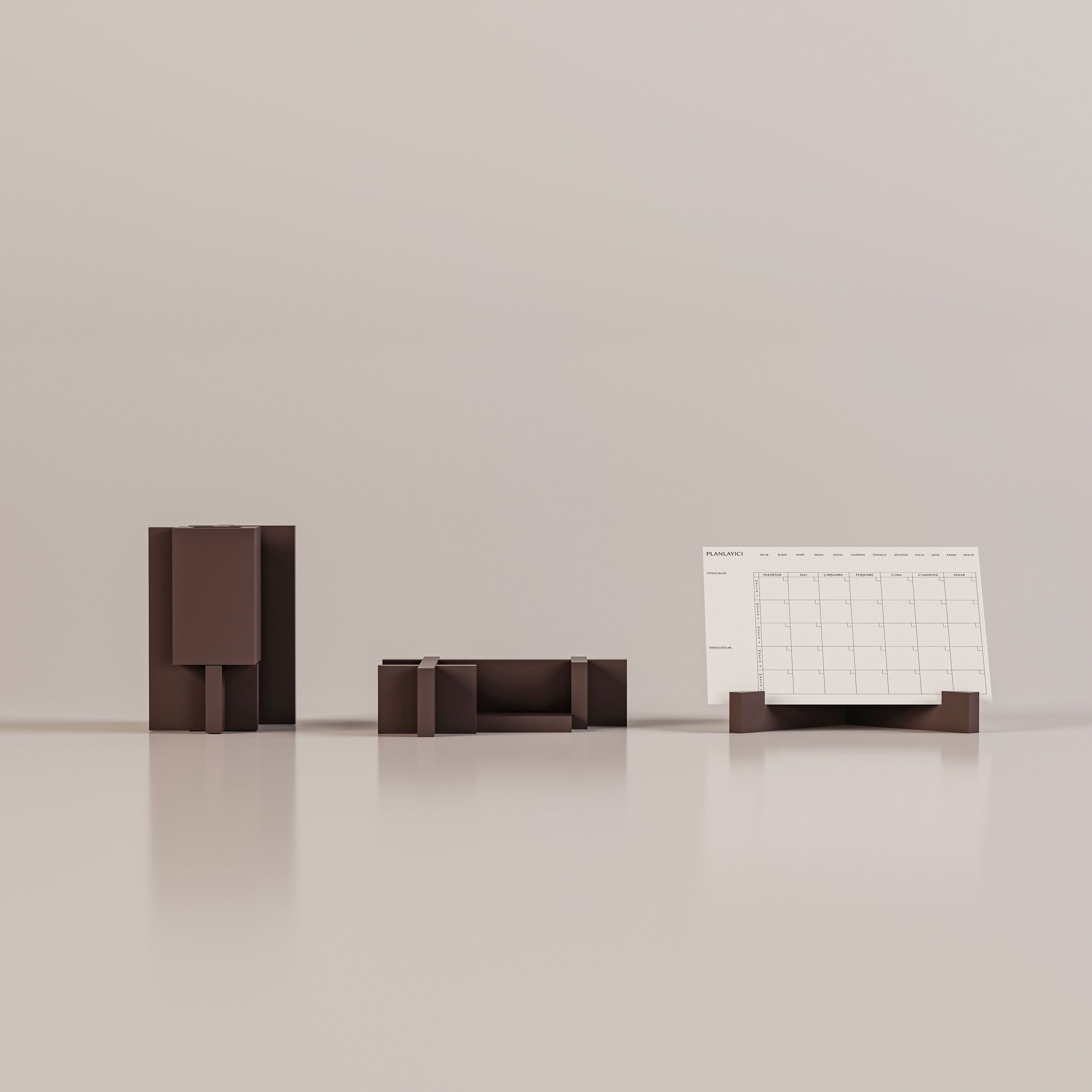 Nars Atelier’in yeni koleksiyonuna ait kalemlik, kartvizitlik ve planlayıcı standından oluşan bu üçlü set, modern minimalizmi masaüstüne taşıyor. Zarif tasarımı sayesinde yalnızca kendi kullanımınız için değil, aynı zamanda sevdikleriniz ve iş arkadaşlarınız için de şık ve anlamlı bir hediye seçeneği sunuyor. Malzeme Bilgisi: MDF üzeri Lake Mat Cila